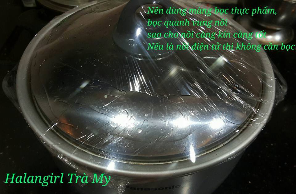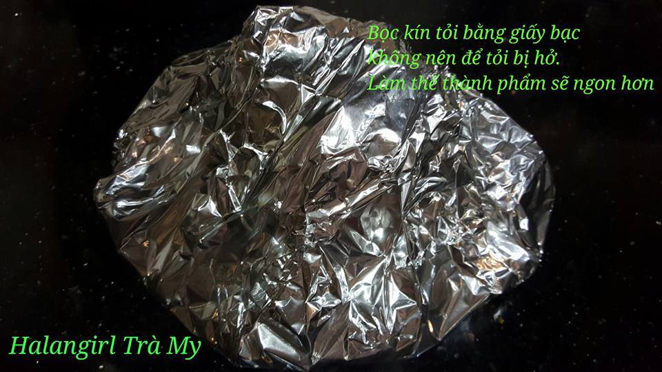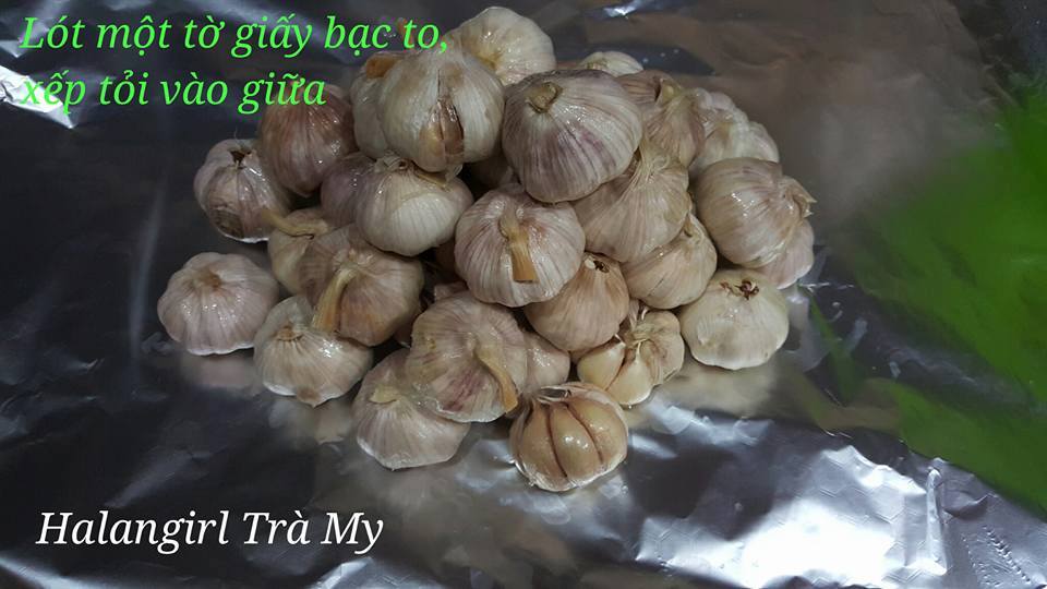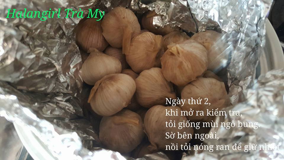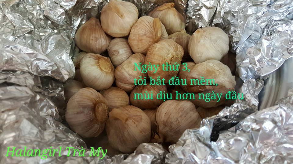 - Gói giấy bạc kín tỏi, rồi cho vào nồi cơm điện, bật nút warm, giữ ấm trong 2 tuần (yên tâm không hỏng nồi đâu, và tiền điện hết tầm 10k thôi). Khi làm, các bạn nhớ dùng màng bọc thực phẩm, bọc kín xung quanh vung nồi điện để giữ nhiệt tốt hơn, nếu là nồi điện tử thì không cần.